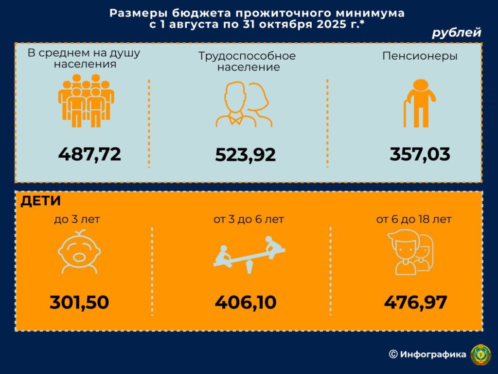 Постановлением Министерства труда и социальной защиты на период с 1 августа по 31 октября 2025 г. утверждены размеры бюджета прожиточного минимума в среднем на душу населения и по основным социально-демографическим группам