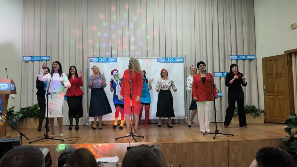 Творческая группа коллег устроила для мужчин по-настоящему эксклюзивный сюрприз, подготовив специальный выпуск корпоративной программы «Вести 300 — вместе». В воздухе вместо привычных рабочих графиков запахло кулисами и телевизионной магией.
